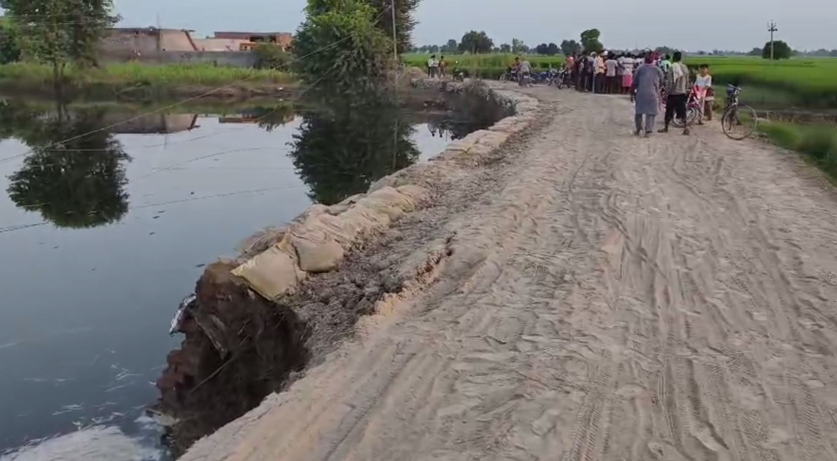ਪੰਜਾਬ ਜਲਾਲਾਬਾਦ ’ਚ ਕੰਧ ਡਿੱਗਣ ਕਾਰਨ ਟੁੱਟਣ ਲੱਗਾ ਬੰਨ੍ਹ ਭਾਰੀ ਵਾਹਨਾਂ ਲਈ ਬੰਦ ਕੀਤਾ ਲਾਂਘਾ By admin - September 16, 2025 0 17 Facebook Twitter Pinterest WhatsApp ਜਲਾਲਾਬਾਦ ਹਲਕੇ ਦੇ ਪਿੰਡ ਢਾਣੀ ਬੱਚਨ ਸਿੰਘ ਨੂੰ ਜੋੜਣ ਵਾਲੇ ਮਾਰਗ ਦੀ ਕੰਧ ਪਾਣੀ ਅੰਦਰ ਡਿੱਗਣ ਕਾਰਨ ਬੰਨ੍ਹ ਨੂੰ ਖਤਰਾ ਪੈਦਾ ਹੋ ਗਿਆ ਐ। ਇਸ ਕਾਰਨ ਲੋਕਾਂ ਅੰਦਰ ਸਹਿਮ ਪਾਇਆ ਜਾ ਰਿਹਾ ਐ। ਪਿੰਡ ਵਾਸੀਆਂ ਨੇ ਕਿਹਾ ਕਿ ਪਹਿਲਾਂ ਵੀ ਤਿੰਨ ਵਾਰ ਬੰਨ ਟੁੱਟ ਚੁੱਕਿਆ ਹੁਣ ਜਦ ਪਾਣੀ ਘਟਨਾ ਸ਼ੁਰੂ ਹੋਇਆ ਤਾਂ ਪਹਿਲਾਂ ਇਸ ਦੇ ਵਿੱਚ ਤਰੇੜਾਂ ਪਈਆਂ ਅਤੇ ਹੁਣ ਇਸ ਦੀ ਕੰਧ ਡਿੱਗਣ ਕਾਰਨ ਉਹਨਾਂ ਦਾ ਰਸਤਾ ਬੰਦ ਹੋ ਰਿਹਾ ਐ। ਦੱਸਣਯੋਗ ਐ ਕਿ ਪਿੰਡ ਨੂੰ ਦੋ ਰਾਹ ਲੱਗਦੇ ਨੇ। ਇੱਕ ਰਸਤੇ ਤੇ ਪਹਿਲਾਂ ਹੀ ਛੇ ਫੁੱਟ ਤੱਕ ਪਾਣੀ ਐ ਤੇ ਦੂਸਰਾ ਰਸਤੇ ਤੇ ਹੁਣ ਕੰਧ ਡਿੱਗਣ ਤੋਂ ਬਾਅਦ ਰਸਤਾ ਖੁਰਨਾ ਸ਼ੁਰੂ ਹੋ ਗਿਆ। ਪਿੰਡ ਵਿੱਚ ਟਰੈਕਟਰ ਟਰਾਲੀ ਜਾਂ ਹੋਰ ਵਹੀਕਲ ਨਹੀਂ ਜਾ ਸਕਦਾ ਸਿਰਫ ਲੋਕ ਪੈਦਲ ਜਾਂ ਮੋਟਰਸਾਈਕਲ ਤੇ ਹੀ ਜਾ ਸਕਦੇ ਨੇ।