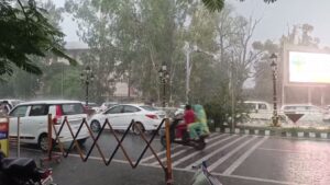 ਮੌਸਮ ਵਿਭਾਗ ਵੱਲੋਂ ਪੰਜਾਬ ਅੰਦਰ ਮੀਂਹ ਪੈਣ ਦੀ ਕੀਤੀ ਭਵਿੱਖਬਾਣੀ ਸਾਬਤ ਹੋਈ ਐ। ਗੱਲ ਜੇਕਰ ਗੁਰੂ ਨਗਰੀ ਅੰਮ੍ਰਿਤਸਰ ਦੀ ਕੀਤੀ ਜਾਵੇ ਤਾਂ ਇੱਥੇ ਅੱਜ ਸਵੇਰ ਤੋਂ ਹੀ ਮੀਂਹ ਸ਼ੁਰੂ ਹੋ ਗਿਆ ਸੀ। ਲਗਾਤਾਰ ਪੈ ਰਹੀ ਇਸ ਮੀਂਹ ਕਾਰਨ ਸ਼ਹਿਰ ਦੇ ਕਈ ਹਿੱਸਿਆਂ ਅੰਦਰ ਪਾਣੀ ਖੜ੍ਹਾ ਹੋ ਗਿਆ ਐ, ਜਿਸ ਦੇ ਚਲਦਿਆਂ ਲੋਕਾਂ ਨੂੰ ਪ੍ਰੇਸ਼ਾਨੀ ਦਾ ਸਾਹਮਣ ਕਰਨਾ ਪਿਆ ਐ। ਮੀਂਹ ਦੇ ਬਾਵਜੂਦ ਸੰਗਤ ਵੱਡੀ ਗਿਣਤੀ ਵਿੱਚ ਦਰਸ਼ਨ ਲਈ ਪਹੁੰਚ ਰਹੀ ਹੈ। ਸਵੇਰ ਦੀਆਂ ਘੜੀਆਂ ਵਿੱਚ ਗੁਰਬਾਣੀ ਦੀ ਧੁਨ ਅਤੇ ਬੂੰਦਾਂ ਦੇ ਰਿਥਮ ਨਾਲ ਸੁਹਣਾ ਦ੍ਰਿਸ਼ ਬਣਿਆ ਹੋਇਆ ਹੈ। ਪ੍ਰਸ਼ਾਸਨ ਵੱਲੋਂ ਲੋਕਾਂ ਨੂੰ ਸੁਰੱਖਿਅਤ ਰਹਿਣ ਅਤੇ ਬੇਵਜ੍ਹਾ ਬਾਹਰ ਨਾ ਨਿਕਲਣ ਦੀ ਅਪੀਲ ਕੀਤੀ ਗਈ ਹੈ।