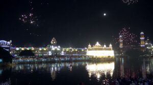 ਸ੍ਰੀ ਗੁਰੂ ਨਾਨਕ ਦੇਵ ਜੀ ਦੇ ਪ੍ਰਕਾਸ਼ ਪੁਰਬ ਮੌਕੇ ਸੱਚਖੰਡ ਸ਼੍ਰੀ ਹਰਿਮੰਦਰ ਸਾਹਿਬ ਵਿਖੇ ਰਹਿਰਾਸ ਸਾਹਿਬ ਦੇ ਪਾਠ ਤੋਂ ਬਾਅਦ ਹੋਈ ਆਤਿਸ਼ਬਾਜ਼ੀ ਨੇ ਮਾਹੌਲ ਨੂੰ ਅਲੌਕਿਕ ਰੂਪ ਦੇ ਦਿੱਤਾ। ਆਤਿਸ਼ਬਾਜ਼ੀ ਤੋਂ ਪਹਿਲਾਂ ਸ੍ਰੀ ਦਰਬਾਰ ਸਾਹਿਬ ਦੇ ਸਰੋਵਰ ਦੇ ਕਿਨਾਰੇ ਸੰਗਤਾਂ ਵੱਲੋਂ ਸੁੰਦਰ ਦੀਪਮਾਲਾ ਕੀਤੀ ਗਈ। ਹਜ਼ਾਰਾਂ ਦੀ ਗਿਣਤੀ ਵਿੱਚ ਦੇਸੀ ਘਿਉਂ ਦੇ ਜਗਾਏ ਗਏ, ਜਿਸ ਕਾਰਨ ਸਰੋਵਰ ਦੇ ਪਾਣੀ ਅੰਦਰ ਮਨਮੋਹਕ ਪ੍ਰਤਿਬਿੰਬ ਬਣਿਆ ਹੋਇਆ ਸੀ। ਦਰਬਾਰ ਸਾਹਿਬ ਰੰਗ-ਬਰੰਗੀਆਂ ਰੌਸ਼ਨੀਆਂ ਨਾਲ ਰੁਸ਼ਨਾਇਆ ਹੋਇਆ ਸੀ, ਜਿਸ ਦਾ ਹਜ਼ਾਰਾਂ ਸੰਗਤਾਂ ਨੇ ਸ਼ਰਧਾ ਭਾਵ ਨਾਲ ਆਨੰਦ ਮਾਣਿਆ।