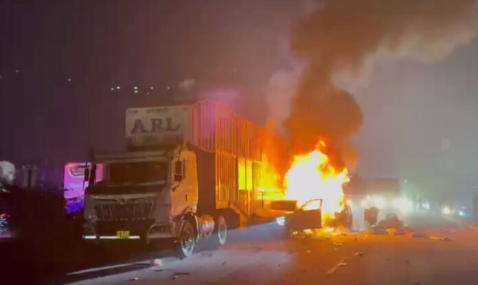 ਉਨ੍ਹਾਂ ਕਿਹਾ ਕਿ ਹਾਦਸੇ ਵਿੱਚ ਗੰਭੀਰ ਜ਼ਖਮੀ ਹੋਏ ਤਿੰਨ ਲੋਕਾਂ ਨੂੰ ਇਲਾਜ ਲਈ ਸਿਵਲ ਹਸਪਤਾਲ ਫਗਵਾੜਾ ਭੇਜਿਆ ਗਿਆ ਹੈ। ਫਗਵਾੜਾ ਤੋਂ ਪਹੁੰਚੀਆਂ ਫਾਇਰ ਬ੍ਰਿਗੇਡ ਦੀਆਂ ਗੱਡੀਆਂ ਨੇ ਅੱਗ ‘ਤੇ ਕਾਬੂ ਪਾਇਆ। ਉਨ੍ਹਾਂ ਕਿਹਾ ਕਿ ਇਹ ਹਾਦਸਾ ਟ੍ਰੈਫਿਕ ਹੋਣ ਕਾਰਨ ਵਾਪਰਿਆ ਐ। ਸਿਵਲ ਹਸਪਤਾਲ ਫਗਵਾੜਾ ਦੇ ਇੱਕ ਡਾਕਟਰਾਂ ਦੇ ਦੱਸਣ ਮੁਤਾਬਕ ਹਾਦਸੇ ਤੋਂ ਬਾਅਦ ਦੋ ਲੋਕ ਉਨ੍ਹਾਂ ਕੋਲ ਇਲਾਜ ਲਈ ਪਹੁੰਚੇ, ਜਿਨ੍ਹਾਂ ਵਿੱਚੋਂ ਇੱਕ ਲੜਕੇ ਦੀ ਮੌਤ ਹੋ ਗਈ ਅਤੇ ਦੂਜਾ ਗੰਭੀਰ ਜ਼ਖਮੀ ਹੋ ਗਿਆ ਐ, ਜਿਸ ਦਾ ਇਲਾਜ ਚੱਲ ਰਿਹਾ ਐ।