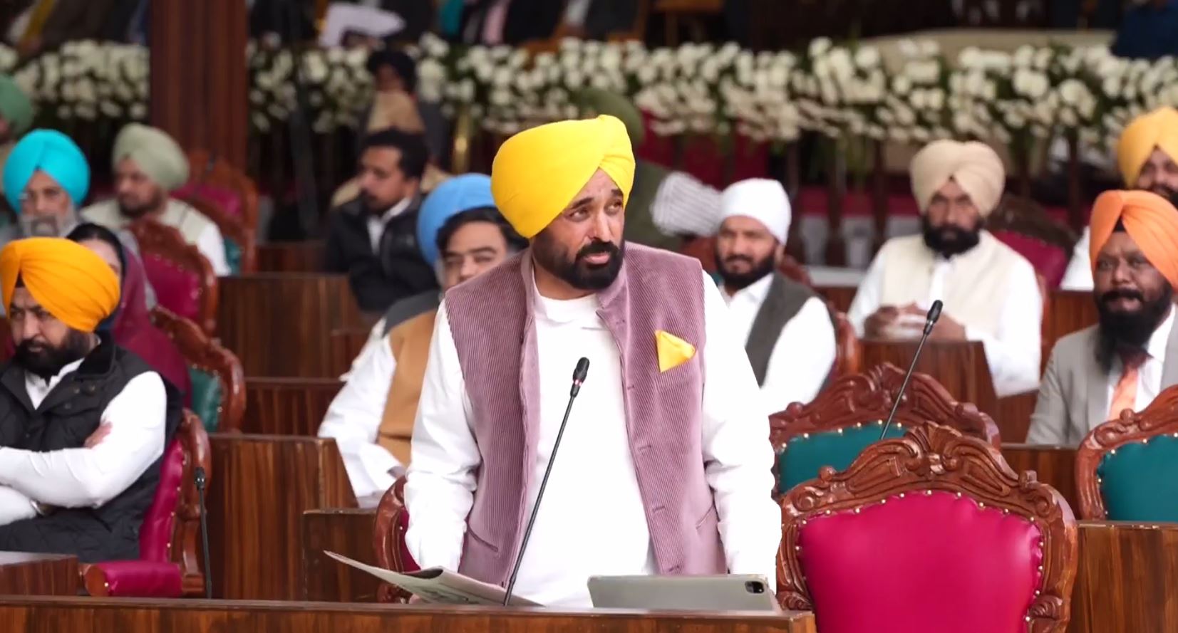 ਮੁੱਖ ਮੰਤਰੀ ਭਗਵੰਤ ਮਾਨ ਨੇ ਕਿਹਾ ਕਿ ਅੱਜ ਦਾ ਦਿਨ ਰੌਲਾ ਰੱਪਾ ਪਾਉਣ ਵਾਲਾ ਨਹੀਂ ਬਲਕਿ ਮੁਕੱਦਸ ਦਿਨ ਹੈ। ਪਹਿਲੀ ਵਾਰ ਹੈ ਜਦੋਂ ਪੰਜਾਬ ਦੀ ਵਿਧਾਨ ਸਭਾ ਚੰਡੀਗੜ੍ਹ ਤੋਂ ਚੱਲ ਕੇ ਗੁਰੂ ਦੇ ਚਰਨਾਂ ਵਿਚ ਸਿੱਜਦਾ ਕਰਨ ਲਈ ਆਈ ਹੈ। ਮੁੱਖ ਮੰਤਰੀ ਮਾਨ ਨੇ ਗੁਰੂ ਸਾਹਿਬ ਦੀ ਸ਼ਹਾਦਤ ਨੂੰ ਸਿਜਦਾ ਕੀਤਾ। ਇਜਲਾਸ ਵਿੱਚ ਬੋਲਦਿਆਂ ਮੁੱਖ ਮੰਤਰੀ ਮਾਨ ਨੇ ਸ਼੍ਰੀ ਗੁਰੂ ਤੇਗ ਬਾਹਦਰ ਜੀ ਦੀ ਕੁਰਬਾਨੀ ਨੂੰ ਯਾਦ ਕੀਤਾ। ਮੁੱਖ ਮੰਤਰੀ ਵੱਲੋਂ ਸਦਨ ਵਿਚ ਵਿਰੋਧੀ ਧਿਰ ਦਾ ਧੰਨਵਾਦ। ਇਹ ਦਿਨ ਇਹ ਸ਼ਤਾਬਦੀਆਂ ਰਾਜਨੀਤੀ ਤੋਂ ਉਪਰ ਉੱਠਣ ਦਾ ਦਿਨ। ਗੁਰੂ ਸਾਹਿਬ ਦੀ ਕੁਰਬਾਨੀ ਕਾਇਨਾਤ ਦੀ ਕੁਰਬਾਨੀ ਹੈ। ਸੁਖੀ ਸਾਂਦੀ ਸਾਰਾ ਕਾਰਜ ਸਿਰੇ ਚੜ੍ਹਨ ਦੀ ਅਰਦਾਸ ਕਰਦੇ ਹਾਂ।
