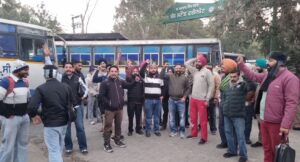 ਫਰੀਦਕੋਟ ’ਚ ਪੀਆਰਟੀਸੀ ਮੁਲਾਜ਼ਮਾਂ ਨੇ ਲਾਇਆ ਜਾਮ; ਆਗੂਆਂ ਨੂੰ ਡੀਟੇਨ ਕਰਨ ਖਿਲਾਫ਼ ਕੀਤੀ ਨਾਅਰੇਬਾਜ਼ੀ