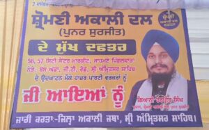 ਸ਼੍ਰੋਮਣੀ ਅਕਾਲੀ ਦਲ ਪੂਰਨ ਸੁਰਜੀਤ ਨੇ ਗੁਰੂ ਨਗਰੀ ਅੰਮ੍ਰਿਤਸਰ ਵਿਖੇ ਆਪਣਾ ਦਫਤਰ ਖੋਲ੍ਹ ਦਿੱਤਾ ਐ। ਦਫਤਰ ਦੇ ਉਦਘਾਟਨ ਮੌਕੇ ਕੀਰਤਨ ਸਮਾਗਮ ਕਰਵਾਇਆ ਗਿਆ, ਜਿਸ ਵਿਚ ਪਾਰਟੀ ਦੇ ਵੱਡੀ ਗਿਣਤੀ ਆਗੂਆਂ ਨੇ ਸ਼ਿਰਕਤ ਕੀਤੀ। ਇਸ ਮੌਕੇ ਮੀਡੀਆ ਨਾਲ ਗੱਲਬਾਤ ਕਰਦਿਆਂ ਪਾਰਟੀ ਆਗੂ ਗੁਰਪ੍ਰਤਾਪ ਸਿੰਘ ਵਡਾਲਾ ਵੱਲੋਂ ਕਿਹਾ ਗਿਆ ਕਿ ਨਵੇਂ ਦਫਤਰ ਖੁੱਲਣ ਦੇ ਨਾਲ ਪਾਰਟੀ ਦੀ ਸੰਗਠਨਾਤਮਕ ਵਿੱਚ ਮਜਬੂਤੀ ਦਾ ਵਾਧਾ ਹੋਵੇਗਾ।