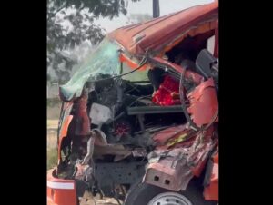 ਜਲੰਧਰ ਸ਼ਹਿਰ ਦੀ ਇਕ ਵੀਡੀਓ ਸ਼ੋਸ਼ਲ ਮੀਡੀਆ ਤੇ ਤੇਜ਼ੀ ਨਾਲ ਵਾਇਰਲ ਹੋ ਰਹੀ ਐ, ਜਿਸ ਵਿਚ ਇਕ ਨੁਕਸਾਨਿਆ ਟਰੱਕ ਸੜਕ ਤੇ ਦੌੜਦਾ ਦਿਖਾਈ ਦੇ ਰਿਹਾ ਐ। ਵੀਡੀਓ ਜਲੰਧਰ-ਫਗਵਾੜਾ ਵਾਈਵੇ ਦੀ ਦੱਸੀ ਜਾ ਰਹੀ ਐ। ਵੀਡੀਓ ਵਿਚ ਦਿਖਾਈ ਦਿੰਦੇ ਟਰੱਕ ਦਾ ਅਗਲਾ ਹਿੱਸਾ ਬੂਰੀ ਤਰ੍ਹਾਂ ਨੁਕਸਾਨਿਆ ਹੋਇਆ ਐ ਜੋ ਨਾਲ ਚੱਲਦੇ ਵਾਹਨਾਂ ਨਾਲ ਟਕਰਾਉਣ ਦਾ ਖਤਰਾ ਬਣਿਆ ਹੋਇਆ ਐ। ਇੰਨਾ ਹੀ ਨਹੀਂ ਨੁਕਸਾਨ ਟਰੱਕ ਦਾ ਡਰਾਈਵਰ ਫੋਨ ਤੇ ਗੱਲ ਕਰਦਾ ਦਿਖਾਈ ਦੇ ਰਿਹਾ ਐ। ਟਰੱਕ ਦੇ ਇਸ ਹਾਲਤ ਵਿਚ ਚੱਲਣ ਨੇ ਪੁਲਿਸ ਮੁਸ਼ਤੈਦੀ ਤੇ ਸਵਾਰ ਖੜ੍ਹੇ ਕਰ ਦਿੱਤੇ ਨੇ।