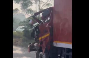 ਜਲੰਧਰ ਸ਼ਹਿਰ ਦੀ ਇਕ ਵੀਡੀਓ ਸ਼ੋਸ਼ਲ ਮੀਡੀਆ ਤੇ ਤੇਜ਼ੀ ਨਾਲ ਵਾਇਰਲ ਹੋ ਰਹੀ ਐ, ਜਿਸ ਵਿਚ ਇਕ ਨੁਕਸਾਨਿਆ ਟਰੱਕ ਸੜਕ ਤੇ ਦੌੜਦਾ ਦਿਖਾਈ ਦੇ ਰਿਹਾ ਐ। ਵੀਡੀਓ ਜਲੰਧਰ-ਫਗਵਾੜਾ ਵਾਈਵੇ ਦੀ ਦੱਸੀ ਜਾ ਰਹੀ ਐ। ਵੀਡੀਓ ਵਿਚ ਦਿਖਾਈ ਦਿੰਦੇ ਟਰੱਕ ਦਾ ਅਗਲਾ ਹਿੱਸਾ ਬੂਰੀ ਤਰ੍ਹਾਂ ਨੁਕਸਾਨਿਆ ਹੋਇਆ ਐ ਜੋ ਨਾਲ ਚੱਲਦੇ ਵਾਹਨਾਂ ਨਾਲ ਟਕਰਾਉਣ ਦਾ ਖਤਰਾ ਬਣਿਆ ਹੋਇਆ ਐ। ਇੰਨਾ ਹੀ ਨਹੀਂ ਨੁਕਸਾਨ ਟਰੱਕ ਦਾ ਡਰਾਈਵਰ ਫੋਨ ਤੇ ਗੱਲ ਕਰਦਾ ਦਿਖਾਈ ਦੇ ਰਿਹਾ ਐ। ਟਰੱਕ ਦੇ ਇਸ ਹਾਲਤ ਵਿਚ ਚੱਲਣ ਨੇ ਪੁਲਿਸ ਮੁਸ਼ਤੈਦੀ ਤੇ ਸਵਾਰ ਖੜ੍ਹੇ ਕਰ ਦਿੱਤੇ ਨੇ।