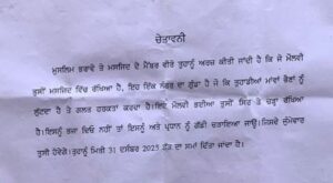ਪੰਜਾਬ ਮਾਲੇਰਕੋਟਲਾ ’ਚ ਮਸਜਿਦ ਦੇ ਮੌਲਵੀ ਨੂੰ ਧਮਕੀ/ ਮਸਜਿਦ ਦੀ ਕੰਧ ’ਤੇ ਚਿਪਕਾਇਆ ਚਿਤਾਵਨੀ ਪੱਤਰ By admin - December 20, 2025 0 11 Facebook Twitter Pinterest WhatsApp ਮਾਲੇਰਕੋਟਲਾ ਅਧੀਨ ਆਉਂਦੇ ਪਿੰਡ ਨੱਥੂਮਾਜਰਾ ਵਿਚ ਹਾਲਾਤ ਉਸ ਵੇਲੇ ਸਹਿਮ ਵਾਲੇ ਬਣ ਗਏ ਜਦੋਂ ਇੱਥੇ ਸਥਿਤ ਮਸਜਿਦ ਦੀ ਕੰਧ ’ਤੇ ਲੋਕਾਂ ਨੇ ਧਮਕੀ ਪੱਤਰ ਚਿਪਕਿਆ ਵੇਖਿਆ। ਧਮਕੀ ਪੱਤਰ ਵਿਚ ਮਸਜਿਸ ਦੇ ਮੌਲਵੀ ਤੇ ਪ੍ਰਧਾਨ ਨੂੰ ਲਾਂਭੇ ਕਰਨ ਦੀ ਮੰਗ ਕਰਦਿਆਂ ਮੰਗ ਨਾ ਮੰਨਣ ਤੇ ਜਾਨੋਂ ਮਾਰਨ ਦੀ ਚਿਤਾਵਨੀ ਦਿੱਤੀ ਗਈ ਐ। ਪਿੰਡ ਦੇ ਮੁਸਲਿਮ ਭਾਈਚਾਰੇ ਨੇ ਘਟਨਾ ਦੀ ਜਾਂਚ ਕਰ ਕੇ ਕਾਰਵਾਈ ਮੰਗੀ ਐ। ਜਾਣਕਾਰੀ ਅਨੁਸਾਰ ਪਿੰਡ ਦੀ ਮਸਜਿਦ ਵਿੱਚ ਕਿਸੇ ਸ਼ੱਕੀ ਵਿਅਕਤੀ ਵੱਲੋਂ ਮਸਜਿਦ ਦੇ ਵਿੱਚ ਬਣੇ ਬਾਥਰੂਮ ਵਾਲੀ ਕੰਧ ਤੇ ਇੱਕ ਚਿਤਾਵਨੀ ਭਰੀ ਚਿੱਠੀ ਚਿਪਕਾ ਦਿੱਤੀ ਗਈ ਜਿਸ ਉੱਤੇ ਲਿਖਿਆ ਸੀ ਕੇ ਮਸਜਿਦ ਦਾ ਮੌਲਵੀ ਹੈ ਜੋ ਉਹ ਇੱਕ ਨੰਬਰ ਦਾ ਗੁੰਡਾ ਹੈ…ਧੀਆਂ ਭੈਣਾਂ ਨਾਲ ਗਲਤ ਹਰਕਤਾਂ ਕਰਦਾ ਹੈ, ਉਹਨਾ ਨੂੰ ਲੁੱਟਦਾ ਹੈ, ਇਹ ਮੌਲਵੀ ਭਈਆ ਤੁਸੀਂ ਸਿਰ ਉਤੇ ਚੜਾ ਰੱਖਿਆ ਹੈ, ਇਸਨੂੰ ਭਜਾ ਦੇਵੋ ਨਹੀ ਤਾਂ ਇਸਨੂੰ ਅਤੇ ਪ੍ਰਧਾਨ ਨੂੰ ਗੱਡੀ ਚਾੜ ਦਿੱਤਾ ਜਾਊਗਾ। ਘਟਨਾ ਤੋਂ ਬਾਅਦ ਮੌਲਵੀ ਅਤੇ ਪ੍ਰਧਾਨ ਕਾਫੀ ਡਰੇ ਹੋਏ ਹਨ। ਪਿੰਡ ਦੇ ਮੁਸਲਿਮ ਭਾਈਚਾਰੇ ਘਟਨਾ ਦੀ ਜਾਂਚ ਦੀ ਮੰਗ ਕੀਤੀ ਐ। ਪੁਲਿਸ ਨੇ ਧਮਕੀ ਪੱਤਰ ਕਬਜੇ ਵਿਚ ਲੈ ਕੇ ਮਾਮਲੇ ਦੀ ਜਾਂਚ ਸ਼ੁਰੂ ਕਰ ਦਿੱਤੀ ਐ।