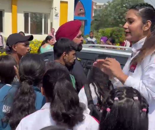 ਪੰਜਾਬ ਅਮਲੋਹ ਦੀ ਦੇਸ਼ ਭਗਤ ਯੂਨੀਵਰਸਿਟੀ ’ਚ ਹੰਗਾਮਾ/ ਦੂਜੇ ਰਾਜਾਂ ਤੋਂ ਆਏ ਖਿਡਾਰੀਆਂ ਨੇ ਕੀਤਾ ਪ੍ਰਦਰਸ਼ਨ/ ਸਪੋਰਟਸ ਇਵੈਂਟ ਦੇ ਨਤੀਜਿਆਂ ’ਚ ਹੇਰ-ਫੇਰ ਦਾ ਇਲਜ਼ਾਮ By admin - March 18, 2026 0 1 Facebook Twitter Pinterest WhatsApp ਸ੍ਰੀ ਫਤਹਿਗੜ੍ਹ ਸਾਹਿਬ ਅਧੀਨ ਆਉਂਦੇ ਅਮਲੋਹ ਵਿਖੇ ਸਥਿਤ ਦੇਸ਼ ਭਗਤ ਯੂਨੀਵਰਸਿਟੀ ਵਿਖੇ ਅੱਜ ਉਸ ਵੇਲੇ ਵੱਡਾ ਹੰਗਾਮਾ ਹੋ ਗਿਆ ਜਦੋਂ ਆਲ ਇੰਡੀਆ ਯੂਨੀਵਰਸਿਟੀ ਦੀ ਸਪੋਰਟਸ ਇਵੈਟ ਵਿਚ ਹਿੱਸਾ ਲੈਣ ਆਏ ਵੱਖ ਵੱਖ ਰਾਜਾਂ ਦੇ ਖਿਡਾਰੀਆਂ ਨੇ ਨਤੀਜਿਆਂ ਦੇ ਕਥਿਤ ਧਾਂਦਲੀ ਦੀ ਇਲਜ਼ਾਮ ਲਾਉਂਦਿਆਂ ਰੋਸ ਪ੍ਰਦਰਸ਼ਨ ਸ਼ੁਰੂ ਕਰ ਦਿੱਤਾ। ਖਿਡਾਰੀਆਂ ਨੇ ਯੂਨੀਵਰਸਿਟੀ ਪ੍ਰਸ਼ਾਸਨ ’ਤੇ ਪੱਖਪਾਤ ਅਤੇ ਬਦਸਲੂਕੀ ਦੇ ਗੰਭੀਰ ਇਲਜ਼ਾਮ ਲਗਾਏ, ਜਿਸ ਦੀ ਵੀਡੀਓ ਸੋਸ਼ਲ ਮੀਡੀਆ ਤੇ ਵਾਇਰਲ ਹੋ ਰਹੀ ਹੈ। ਘਟਨਾ ਦੀ ਸੂਚਨਾ ਮਿਲਣ ਬਾਅਦ ਮੌਕੇ ਤੇ ਪਹੁੰਚੀ ਡੀਐਸਪੀ ਅਮਲੋਹ ਗੁਰਦੀਪ ਸਿੰਘ ਨੇ ਕਿਹਾ ਕ ਦੋਵਾਂ ਧਿਰਾਂ ਨੂੰ ਬਿਠਾ ਕੇ ਮਾਮਲਾ ਸ਼ਾਂਤ ਕਰਵਾ ਦਿੱਤਾ ਹੈ। ਉਨ੍ਹਾਂ ਕਿਹਾ ਕਿ ਖਿਡਾਰੀਆਂ ਤੋਂ ਕੰਪਲੇਂਟ ਲੈ ਕੇ ਆਲ ਇੰਡੀਆ ਮੈਨੇਜਮੈਂਟ ਯੂਨੀਵਰਸਿਟੀ ਨੂੰ ਭੇਜੀ ਜਾਵੇਗੀ, ਜੋ ਇਸ ਮਾਮਲੇ ਦੀ ਪੂਰੀ ਜਾਂਚ ਕਰੇਗੀ।