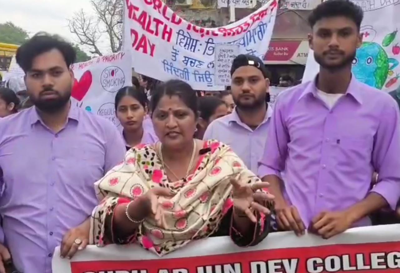 ਪੰਜਾਬ ਧਾਰੀਵਾਲ ’ਚ ਨਰਸਿੰਗ ਵਿਦਿਆਰਥਣਾਂ ਦੀ ਜਾਗਰੂਕਤਾ ਰੈਲੀ/ ਵਿਸ਼ਵ ਸਿਹਤ ਦਿਵਸ ਮੌਕੇ ਨਸ਼ੇ ਤਿਆਗਣ ਦਾ ਸੁਨੇਹਾ By admin - April 8, 2026 0 1 Facebook Twitter Pinterest WhatsApp ਗੁਰਦਾਸਪੁਰ ਦੇ ਕਸਬਾ ਧਾਰੀਵਾਲ ਵਿਖੇ ਸਥਿਤ ਸ੍ਰੀ ਗੁਰੂ ਅਰਜਨ ਦੇਵ ਨਰਸਿੰਗ ਕਾਲਜ ਦੇ ਵਿਦਿਆਰਥੀਆਂ ਵੱਲੋਂ ਇੱਕ ਜਾਗਰੂਕਤਾ ਰੈਲੀ ਕੱਢੀ ਗਈ। ਲੋਕਾਂ ਨੂੰ ਸਿਹਤਮੰਦ ਰਹਿਣ ਦਾ ਸੁਨੇਹਾ ਦਿੰਦੀ ਇਸ ਰੈਲੀ ਨੂੰ ਧਾਰੀਵਾਲ ਦੇ ਐਸਐਮਓ ਨੇ ਹਰੀ ਝੰਡੀ ਦੇ ਕੇ ਰਵਾਨਾ ਕੀਤਾ। ਰੈਲੀ ਗੁਰੂ ਅਰਜਨ ਦੇਵ ਕਾਲਜ ਤੋਂ ਸ਼ੁਰੂ ਹੋ ਕੇ ਧਾਰੀਵਾਲ ਦੇ ਸਰਕਾਰੀ ਸੀਨੀਅਰ ਸੈਕੈਂਡਰੀ ਸਕੂਲ ਤੱਕ ਕੱਢੀ ਗਈ। ਰੈਲੀ ਵਿੱਚ ਸਿਹਤਮੰਦ ਰਹਿਣ ਅਤੇ ਨਸ਼ੇ ਤਿਆਗਣ ਦੇ ਸਲੋਗਨ ਲੱਗਿਆ ਤਖਤੀਆਂ ਫੜ ਕੇ ਵਿਦਿਆਰਥੀਆਂ ਨੇ ਸ਼ਹਿਰ ਨਿਵਾਸੀ ਨੂੰ ਸਿਹਤਮੰਦ ਰਹਿਣ ਦਾ ਸੁਨੇਹਾ ਦਿੱਤਾ। ਪ੍ਰਿੰਸੀਪਲ ਡਾਕਟਰ ਪ੍ਰੋਮੀਲਾ ਦੇ ਪ੍ਰਬੰਧਾਂ ਹੇਠ ਕੱਢੀ ਜਾ ਰਹੀ ਰੈਲੀ ਦੌਰਾਨ ਨੌਜਵਾਨਾਂ ਨੂੰ ਨਸ਼ਿਆਂ ਤੋਂ ਦੂਰ ਰਹਿਣ ਅਤੇ ਆਪਣੀ ਸਿਹਤ ਦਾ ਖਿਆਲ ਰੱਖਣ ਦੀ ਅਪੀਲ ਕੀਤੀ ਗਈ। ਪ੍ਰਿੰਸੀਪਲ ਡਾਕਟਰ ਪ੍ਰੋਮਿਲਾਂ ਨੇ ਕਿਹਾ ਕਿ ਜੇਕਰ ਸਿਹਤ ਨਹੀਂ ਹੈ ਤਾਂ ਕਿਸੇ ਵੀ ਹੋਰ ਚੀਜ਼ ਦਾ ਕੋਈ ਫਾਇਦਾ ਨਹੀਂ ਹੈ, ਇਸ ਲਈ ਸਾਨੂੰ ਸਾਰਿਆਂ ਨੂੰ ਆਪਣੀ ਸਿਹਤ ਦੀ ਸੰਭਾਲ ਵੱਲ ਵਿਸ਼ੇਸ਼ ਧਿਆਨ ਦੇਣਾ ਚਾਹੀਦਾ ਹੈ।