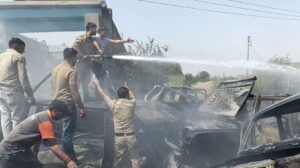 ਪੰਜਾਬ ਮੋਗਾ ਦੇ ਬੁੱਗੀਪੁਰਾ ਚੌਕ ਨੇੜੇ ਵੱਡਾ ਹਾਦਸਾ/ ਕਟਰ ਦੀ ਚਿੰਗਾਰੀ ਨਾਲ ਭੜਕੀ ਅੱਗ/ ਲੱਖਾਂ ਦਾ ਨੁਕਸਾਨ, ਫਾਇਰ ਬ੍ਰਿਗੇਡ ਨੇ ਪਾਇਆ ਕਾਬੂ By admin - April 18, 2026 0 1 Facebook Twitter Pinterest WhatsApp ਮੋਗਾ ਦੇ ਬੁੱਗੀਪੁਰਾ ਚੌਕ ਨੇੜੇ ਸ਼ਨੀਵਾਰ ਨੂੰ ਉਸ ਵੇਲੇ ਹੜਕੰਪ ਮਚ ਗਿਆ, ਜਦੋਂ ਇੱਕ ਵਰਕਸ਼ਾਪ ਦੇ ਬਾਹਰ ਕਟਰ ਨਾਲ ਕਟਿੰਗ ਕਰਦੇ ਸਮੇਂ ਨਿਕਲੀ ਚਿੰਗਾਰੀ ਨੇ ਭਿਆਨਕ ਅੱਗ ਦਾ ਰੂਪ ਧਾਰ ਲਿਆ। ਇਸ ਅੱਗ ਕਾਰਨ ਲੱਖਾਂ ਰੁਪਏ ਦਾ ਨੁਕਸਾਨ ਹੋਣ ਦੀ ਸੂਚਨਾ ਹੈ। ਜਾਣਕਾਰੀ ਅਨੁਸਾਰ ਮੈਡੀਸਿਟੀ ਦੇ ਨੇੜੇ ਸਥਿਤ “ਬਾਬਾ ਖੇਤਰ ਪਾਲ ਸਪੇਅਰ ਪਾਰਟ” ਵਰਕਸ਼ਾਪ ਵਿੱਚ ਇੱਕ ਕਰਮਚਾਰੀ ਪੁਰਾਣੀ ਗੱਡੀ ਦੀ ਮੁਰੰਮਤ ਕਰ ਰਿਹਾ ਸੀ। ਇਸ ਦੌਰਾਨ ਜਿਵੇਂ ਹੀ ਕਟਰ ਨਾਲ ਕਟਿੰਗ ਕੀਤੀ ਗਈ, ਅਚਾਨਕ ਚਿੰਗਾਰੀ ਨਿਕਲੀ ਜੋ ਕੁਝ ਸਮੇਂ ਵਿੱਚ ਹੀ ਭੜਕਦੀ ਹੋਈ ਅੱਗ ਵਿੱਚ ਤਬਦੀਲ ਹੋ ਗਈ। ਅੱਗ ਦੀਆਂ ਲਪਟਾਂ ਇੰਨੀ ਤੇਜ਼ੀ ਨਾਲ ਫੈਲੀਆਂ ਕਿ ਕੁਝ ਸਮੇਂ ਵਿੱਚ ਹੀ ਨੇੜੇ ਖੜੀਆਂ ਹੋਰ ਗੱਡੀਆਂ ਵੀ ਇਸ ਦੀ ਲਪੇਟ ਵਿੱਚ ਆ ਗਈਆਂ। ਦੇਖਦੇ ਹੀ ਦੇਖਦੇ ਅੱਗ ਨੇ ਭਿਆਨਕ ਰੂਪ ਧਾਰਨ ਕਰ ਲਿਆ ਅਤੇ ਕਈ ਵਾਹਨ ਸੜ ਗਏ, ਜਿਸ ਨਾਲ ਵੱਡਾ ਆਰਥਿਕ ਨੁਕਸਾਨ ਹੋਇਆ। ਮੌਕੇ ‘ਤੇ ਮੌਜੂਦ ਲੋਕਾਂ ਵਿੱਚ ਘਬਰਾਹਟ ਦਾ ਮਾਹੌਲ ਬਣ ਗਿਆ। ਸੂਚਨਾ ਮਿਲਦੇ ਹੀ ਫਾਇਰ ਬ੍ਰਿਗੇਡ ਦੀਆਂ ਟੀਮਾਂ ਤੁਰੰਤ ਮੌਕੇ ‘ਤੇ ਪਹੁੰਚ ਗਈਆਂ ਅਤੇ ਅੱਗ ‘ਤੇ ਕਾਬੂ ਪਾਉਣ ਲਈ ਜੱਦੋ-ਜਹਿਦ ਸ਼ੁਰੂ ਕਰ ਦਿੱਤੀ। ਖ਼ਬਰ ਲਿਖੇ ਜਾਣ ਤੱਕ ਅੱਗ ‘ਤੇ ਕਾਬੂ ਪਾਉਣ ਦੀ ਕੋਸ਼ਿਸ਼ ਜਾਰੀ ਸੀ। ਇਸ ਘਟਨਾ ਨੇ ਵਰਕਸ਼ਾਪਾਂ ਵਿੱਚ ਸੁਰੱਖਿਆ ਉਪਕਰਣਾਂ ਅਤੇ ਸਾਵਧਾਨੀਆਂ ਦੀ ਲੋੜ ਨੂੰ ਇੱਕ ਵਾਰ ਫਿਰ ਉਜਾਗਰ ਕੀਤਾ ਹੈ।