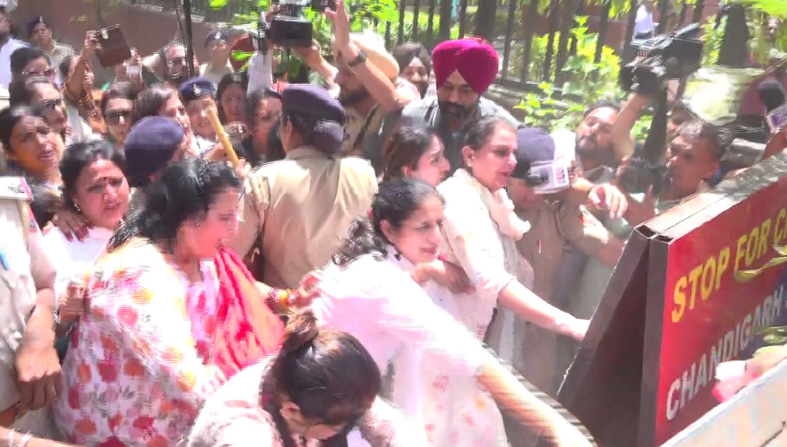 ਪੰਜਾਬ ਚੰਡੀਗੜ੍ਹ ਵਿਖੇ ਭਾਜਪਾ ਮਹਿਲਾ ਮੋਰਚਾ ਦਾ ਪ੍ਰਦਰਸ਼ਨ/ ਮਹਿਲਾ ਰਾਖਵਾਕਰਨ ਬਿੱਲ ਰੋਕਣ ਵਿਰੁਧ ਨਾਅਰੇਬਾਜ਼ੀ/ ਮੁੱਖ ਮੰਤਰੀ ਮਾਨ ਦੀ ਰਿਹਾਇਸ਼ ਵੱਲ ਮਾਰਚ ਦੀ ਕੋਸ਼ਿਸ਼ By admin - April 25, 2026 0 1 Facebook Twitter Pinterest WhatsApp ਚੰਡੀਗੜ੍ਹ ਵਿਖੇ ਭਾਜਪਾ ਮਹਿਲਾ ਮੋਰਚਾ ਵੱਲੋਂ ਲੋਕ ਸਭਾ ਵਿਚ ਮਹਿਲਾ ਰਾਖਵਾਕਰਨ ਬਿੱਲ ਰੋਕਣ ਨੂੰ ਲੈ ਕੇ ਆਮ ਆਦਮੀ ਪਾਰਟੀ ਖਿਲਾਫ ਪ੍ਰਦਰਸ਼ਨ ਕੀਤਾ। ਇਸ ਮੌਕੇ ਭਾਜਪਾ ਦੀ ਸੀਨੀਅਰ ਲੀਡਰਸ਼ਿਪ ਤੋਂ ਇਲਾਵਾ ਮਹਿਲਾ ਮੋਰਚਾ ਦੇ ਆਗੂਆਂ ਨੇ ਵਿਸ਼ੇਸ਼ ਤੌਰ ਤੇ ਸ਼ਿਰਕਤ ਕੀਤੀ ਗਈ। ਸੈਕਟਰ 37 ਵਿਖੇ ਇਕੱਤਰ ਹੋਏ ਆਗੂਆਂ ਨੇ ਮੁੱਖ ਮੰਤਰੀ ਮਾਨ ਦੀ ਰਿਹਾਇਸ਼ ਦਾ ਘਿਰਾਓ ਲਈ ਮੁੱਖ ਮੰਤਰੀ ਨਿਵਾਸ ਵੱਲ ਰਵਾਨਗੀ ਕੀਤੀ, ਜਿੱਥੇ ਪੁਲਿਸ ਵੱਲੋਂ ਉਨ੍ਹਾਂ ਨੂੰ ਰਸਤੇ ਵਿਚ ਰੋਕ ਲਿਆ ਗਿਆ। ਇਸ ਮਾਰਚ ਦੀ ਅਗਵਾਈ ਭਾਜਪਾ ਪੰਜਾਬ ਦੀ ਵਰਕਿੰਗ ਪ੍ਰਧਾਨ ਅਸ਼ਵਨੀ ਸ਼ਰਮਾ ਅਤੇ ਸਾਬਕਾ ਕੇਂਦਰੀ ਮੰਤਰੀ ਪਰਨੀਤ ਕੌਰ ਨੇ ਕੀਤੀ। ਇਸ ਵਿੱਚ ਭਾਜਪਾ ਪੰਜਾਬ ਮਹਿਲਾ ਮੋਰਚਾ ਦੀ ਪ੍ਰਧਾਨ ਜੈ ਇੰਦਰ ਕੌਰ, ਉਪ ਪ੍ਰਧਾਨ ਮੋਹਿੰਦਰ ਕੌਰ ਜੋਸ਼ ਅਤੇ ਮੋਨਾ ਜੈਸਵਾਲ ਅਤੇ ਸੂਬਾ ਸਕੱਤਰ ਮੀਨੂ ਸੇਠੀ, ਵੰਦਨਾ ਸਾਂਗਵਾਨ ਅਤੇ ਰੇਣੂ ਥੱਪਰ ਸ਼ਾਮਲ ਹੋਈਆਂ।